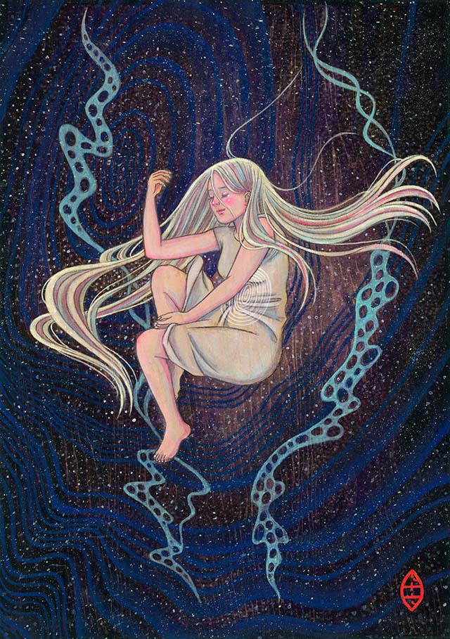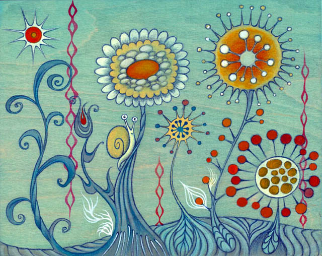 Acrylic and pencil on wood