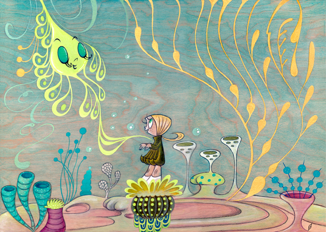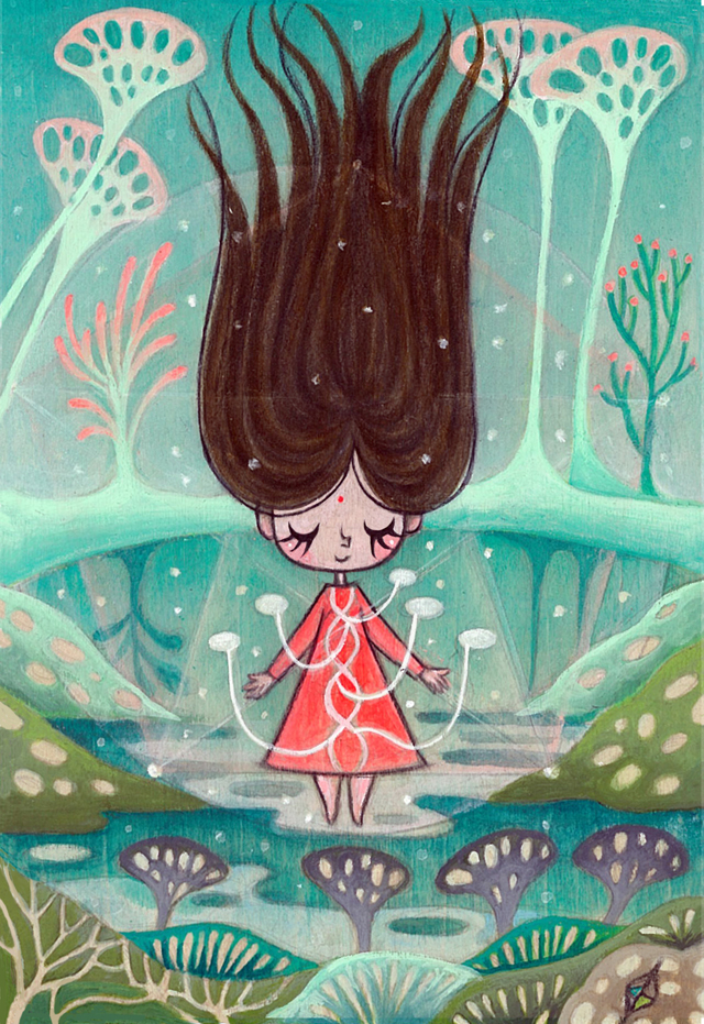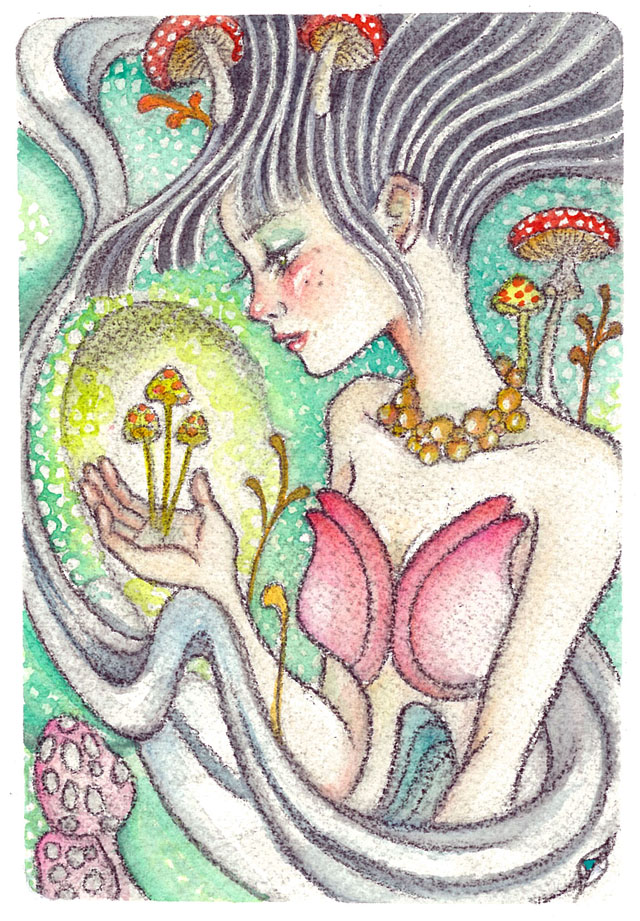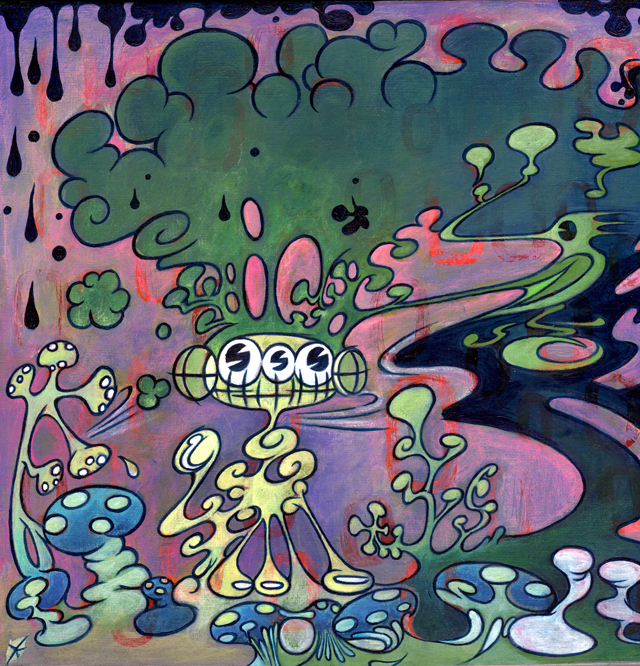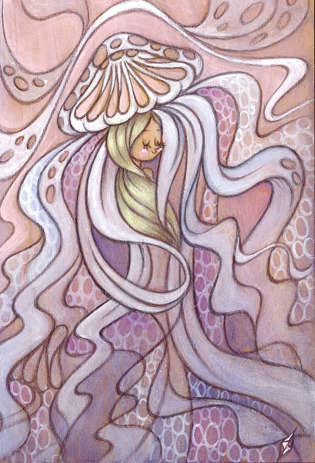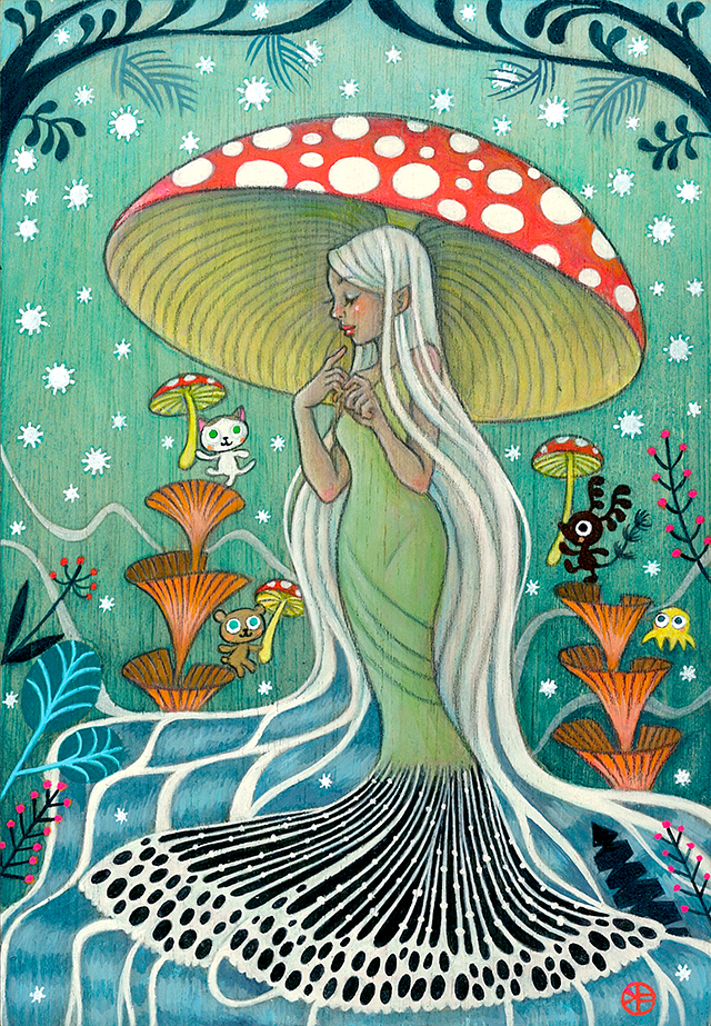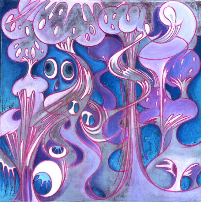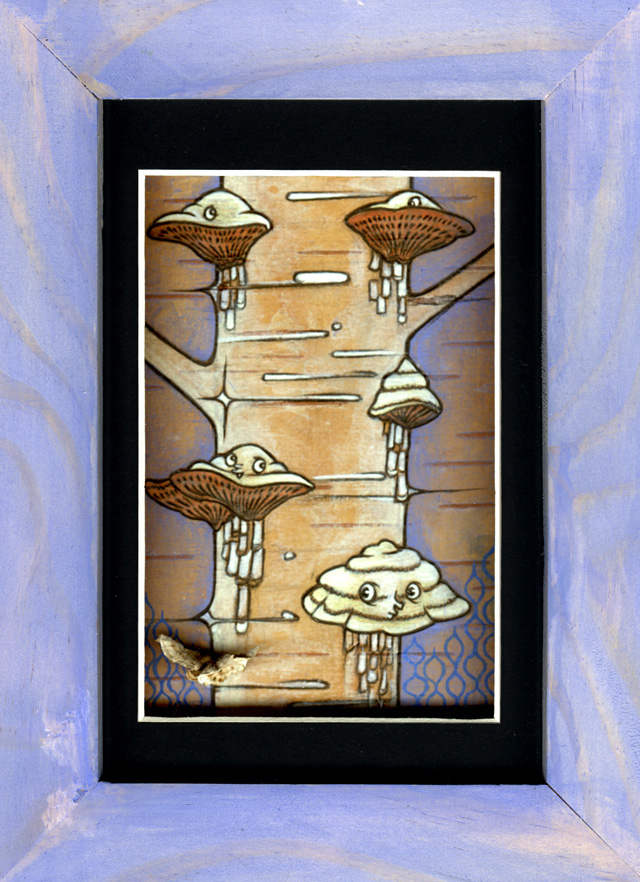 Acrylic and Mushrooms on Birch Wood