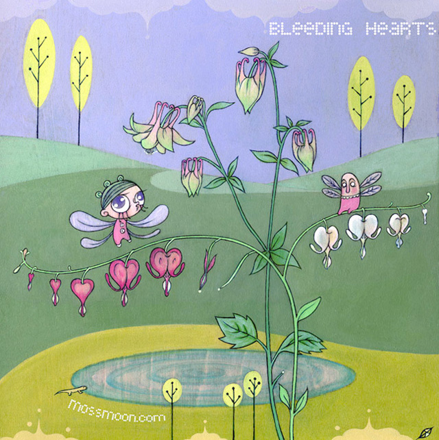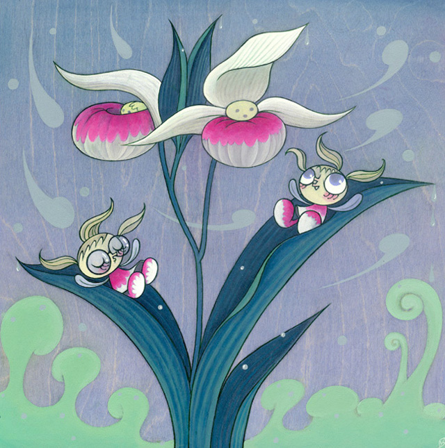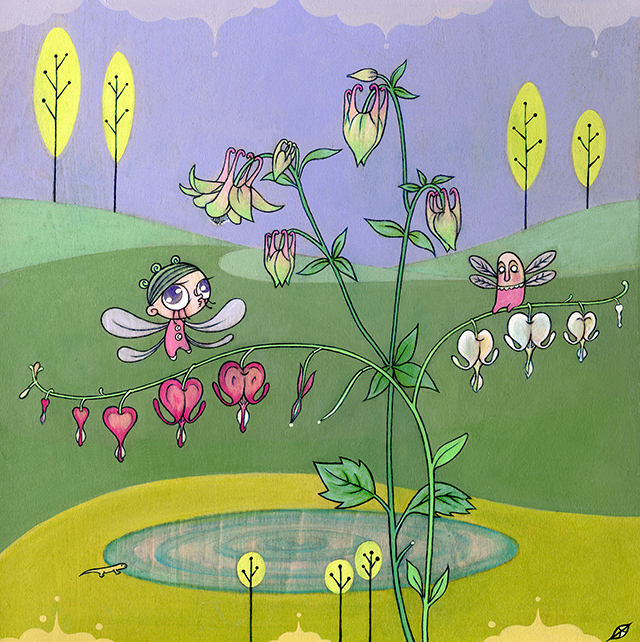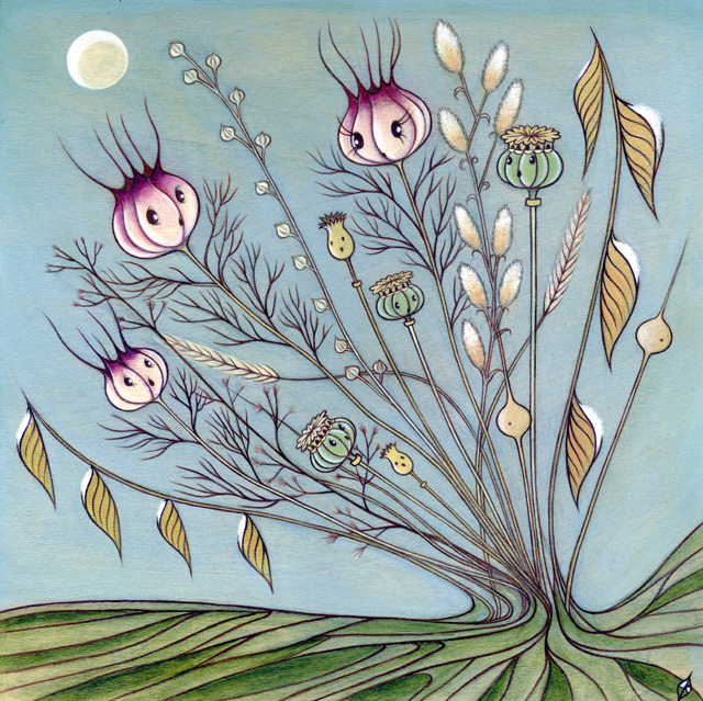 Acrylic and Bladder Campion on Birch Wood