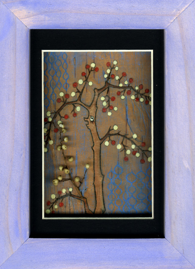Acrylic and Berries on Birch Wood