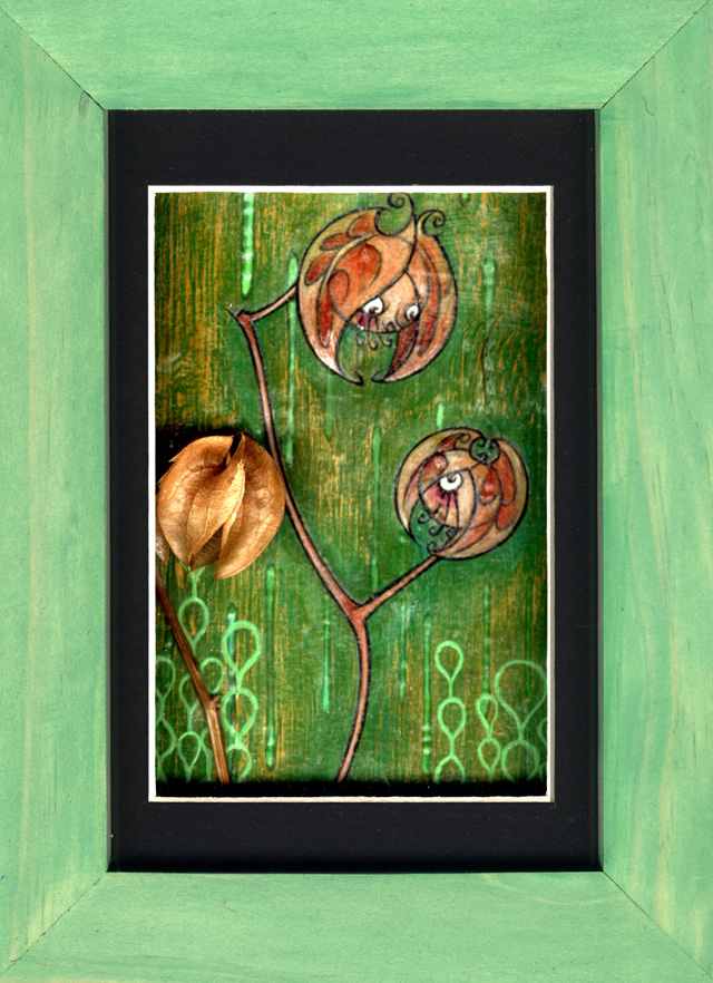 Acrylic and Ground Cherry on Birch Wood